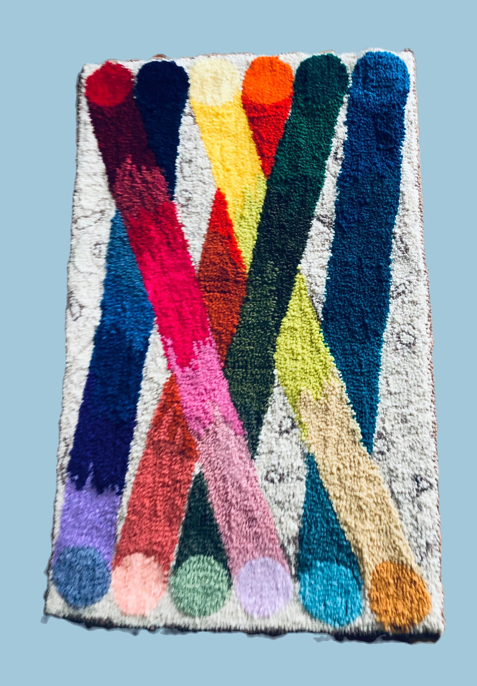 Hand tufted using punch needle technique with 100% wool and either mounted on canvas or wood, or framed. Also tapestries that can be used as wall art or small scatter rugs.…
